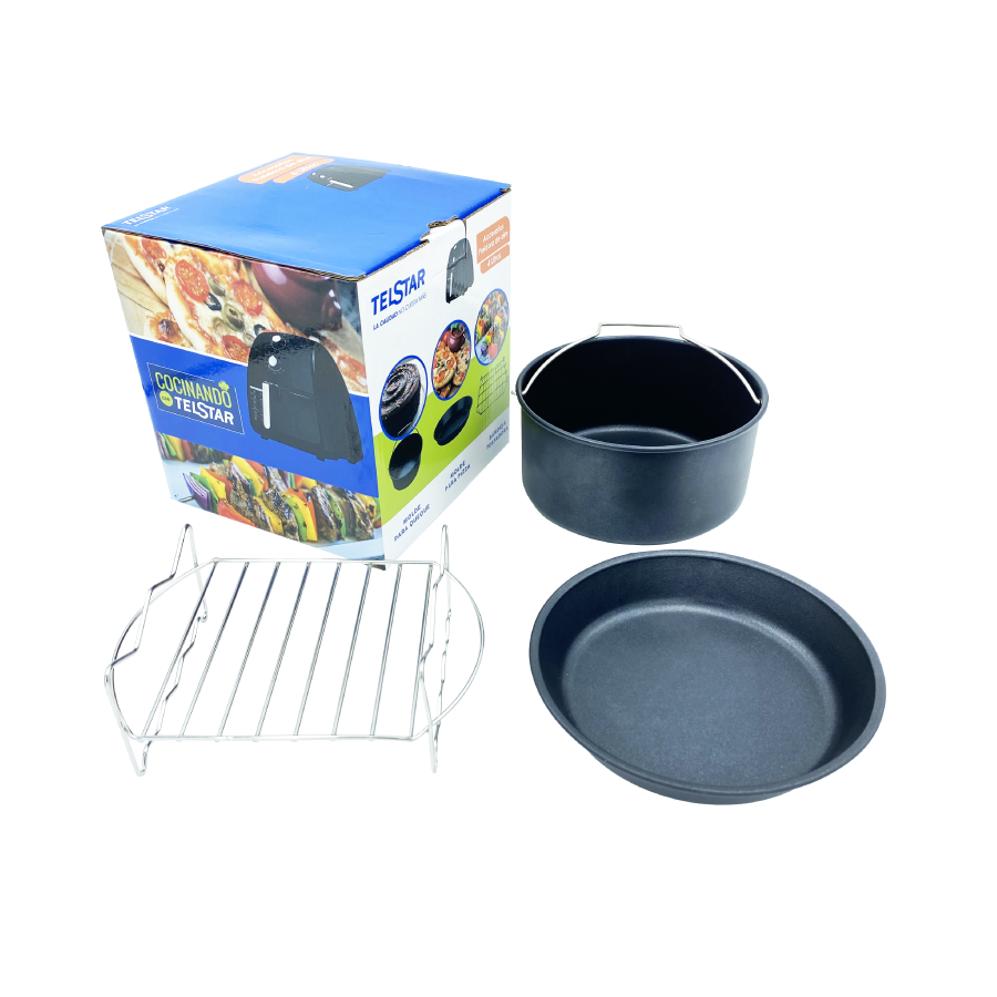 » Accesorios para freidora de aire: Molde para pizza, Molde para queque, Bandeja tostadora.